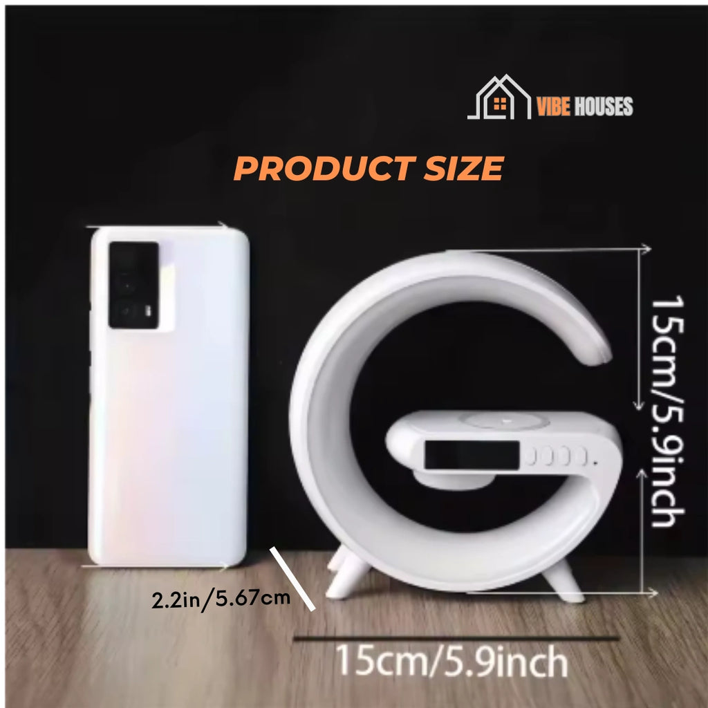 Clock; Lilltle G is the answer to your adjustable ambiance needs, allowing you to create a relaxing atmosphere in any room. The built-in Bluetooth speaker delivers clear, powerful sound to enhance your music experience. And with the wireless charger, you can keep your devices charged without the hassle of cables.
